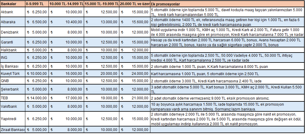Yazının en altında bankaların güncel promosyon tutarlarını görebileceksiniz.
