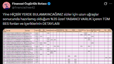 X’den tanıdığımız Finansal özgürlük Rotası’nın sizler için hazırladığı BES fonlarını aşağıdaki linkten indirebilirsiniz. Buradan indirebilirsiniz.