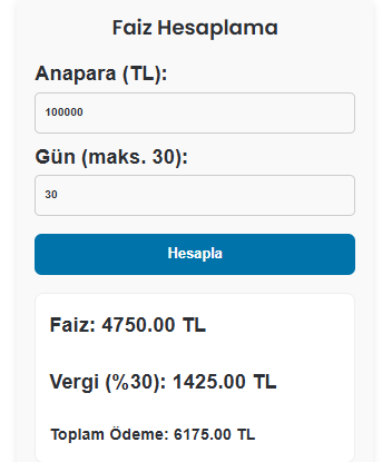 Ek hesap kullanmamız durumunda ise 30 günlük faizimiz sadece daha doğrusu ödememiz gereken minimum tutar 6.175-TL dir.